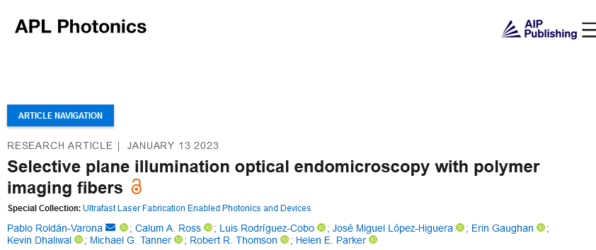 APL- Photonics: Selective plane illumination optical endomicroscopy with polymer imaging fibers