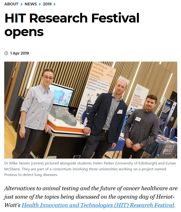 Having fun networking at the Healthcare Innovation and Technologies Festival at Heriot-Watt - and the media guy took a nice photo! https://www.hw.ac.uk/about/news/2019/hit-research-festival-opens.htm hit-festival.org PS, Helen won the poster prize again (obvously).....